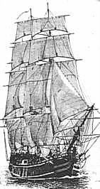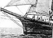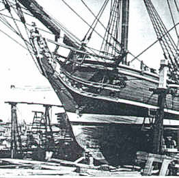 Working from old plans of the original Bounty and details from the narrative of Capt. William Bligh, her commander on her ill-fated voyage to the South Seas, modern shipwrights began their task of reproducing the historic vessel. To begin with, the hull of the Lily was far too narrow. Built on rakish lines, she lacked the breadth of beam of a ship of war of 150 years ago. To remedy this defect, new ribs were placed around the original hull and covered with planking. The space between this outer covering and the original hull was filled with concrete; which served the useful purpose of ballasting the ship.