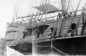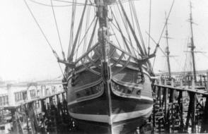 The Lily being rebuilt as the H.M.S Bounty's at a Wilmington California shipyard.
