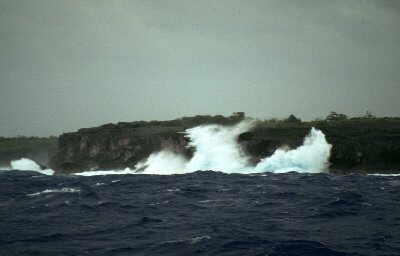 Last year I was onboard the British brigantine "Eye of the wind". On our way from Easter Island to Pitcairn we tried to visit Henderson. We failed due to rough weather conditions. Most of the other people on the "Eye of the wind" were crazy about visiting Pitcairn. To me Pitcairn was just a remote island, not that object of almost religious importance which it is for Brits. I was interested in Henderson and its endemic birds. But as you can see the swell was definitely too high for a landing, and so we had to sail on for Pitcairn. Imagine: 2,5 m swell and 20-25 Beaufort from astern. The wind and swell direction were in line with our course to Pitcairn and this gave us no wind stabilisation. I was thrown in my bunk from one end to the other as our old freighter was caught in the waves. It was a nightmare for the helmsman. Normally I don't do a bad job there, but by that time I joked there must be a giant octopus sitting on the rudder. I simply couldn't find a connection between my steering and the ship's moves. We just left the lower top to slow down, but we would have needed brakes not to reach Pitcairn at night time.A couple of days later we returned with the Pitcairners for timber but there was still no chance of landing on Henderson