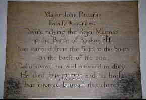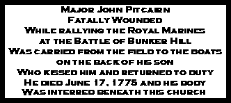 Major Pitcairn is buried in the Old North Church in Boston. There is a Pitcairn Plaque in the church remembering the soldier's heroism at the Battle of Bunker Hill.
