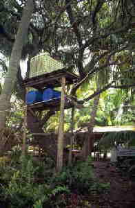 there are the dun cans and rain-fed showers with their plastic tanks amongst the coconuts.